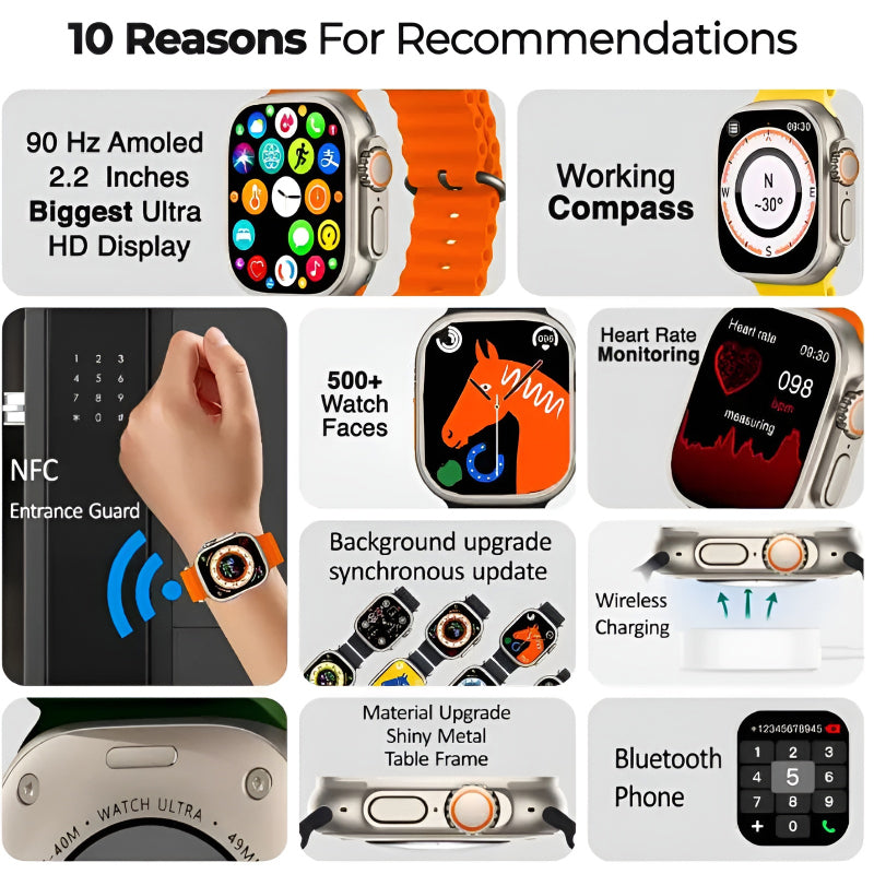 The 7-in-1 Ultra 2.01 Big Infinite Display Smart Watch with 7 Straps is designed for individuals who demand performance and versatility in their daily lives.